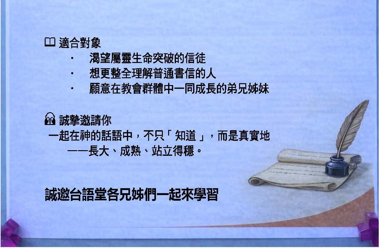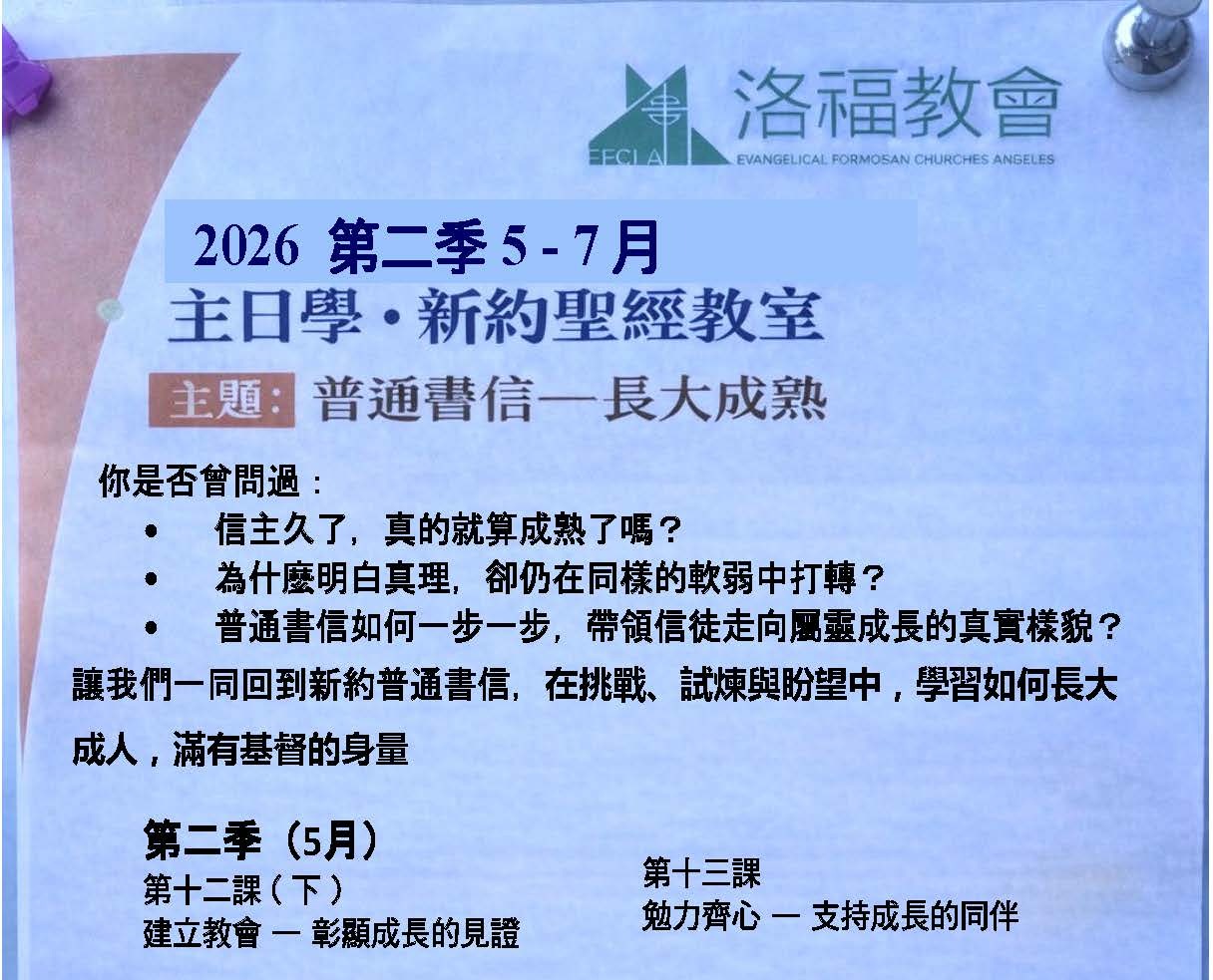| 台語主日學 | 11:30-12:30 | 視頻 |